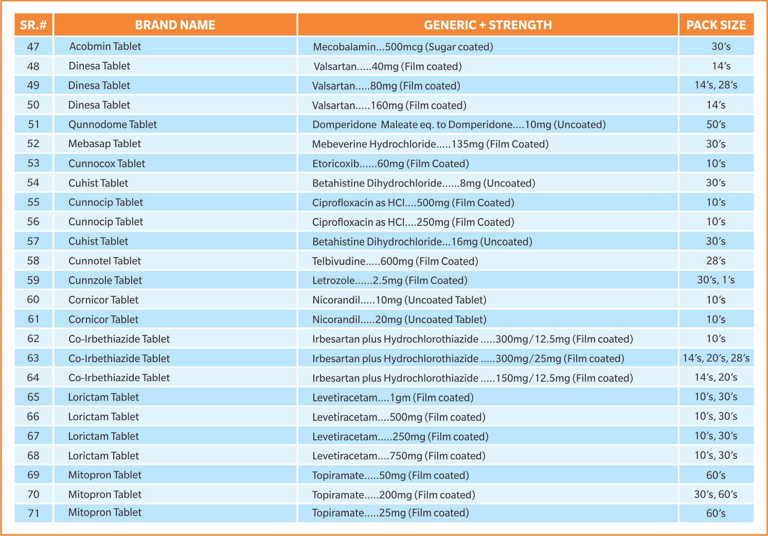 PRODUCT LIST